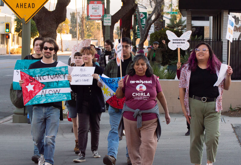 On International Migrants Day, CHIRLA and the CSUSB Undocu Advocates held a rally calling on San Bernadino residents to gather and march as they call for San Bernardino to become a sanctuary city. The demonstration of community ends as members make their way into a town hall meeting to give public comment urging representatives to support their immigrant residents.