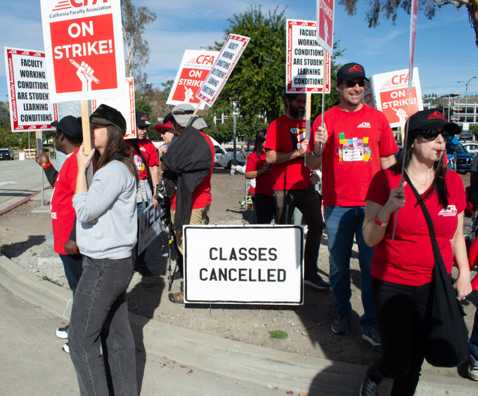 A fight for fair wages and working conditions, faculty, students, and staff at Cal Poly Pomona and Cal State San Bernardino gathered in protest in a systemwide strike. Ashamed of the CSU's unwillingness to cooperate with the California Faculty Association, the streets are filled with those standing in solidarity with the movement as the campus remains empty during the demonstration.