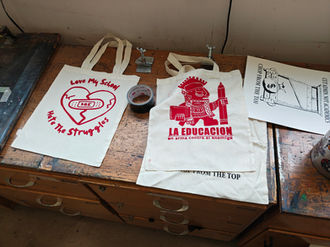As part of Students for Quality Education, I created a screenprinting workshop which provided a space for Cal State San Bernardino campus community to learn about screenprinting and its role in activism, get hands on experience screenprinting, and discuss their concerns regarding the current state of higher education. Utilizing my designs as the starting point for discussion, I guided students through the printing process as they shared concerns, experiences, and ideas with one another.