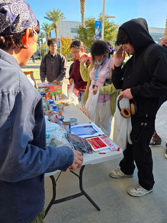 Seeing an avenue through which we can support our fellow students, myself and other members of Students for Quality Education have started a mutual aid project at Cal State San Bernardino. Every Monday since the start of November, student volunteers have gone to local food banks and grocery stores to gather food donations which are then brough to campus and directly distributed to students. No item limits, no sign in sheets, no stigma. All students are asked to do is spread the word and place a stamp. Each stamp is a student served.